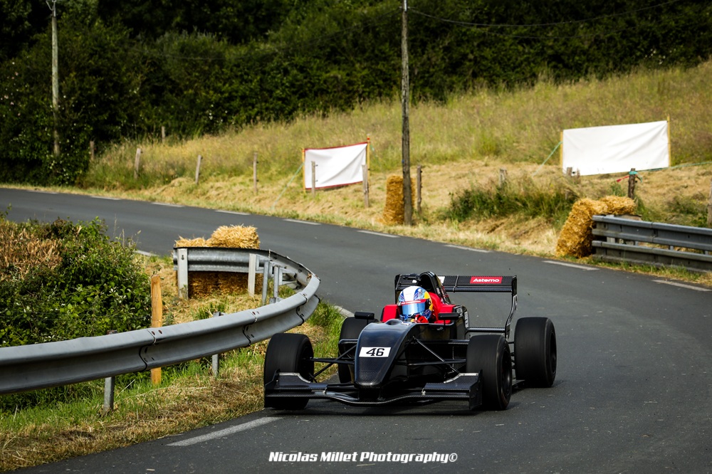 Les Courses de Côte d’Abreschviller en Lorraine et d’Hébécrevon en Normandie n’étaient pas inscrites au calendrier de Romain Pezot que l’on retrouvait par la suite à La Pommeraye. Sur l’épreuve angevine, en bagarre avec Flavien Rognon, il devra céder face aux attaques de son adversaire : « J’ai eu du mal à me mettre dans le bain à La Pommeraye. C’est très court et très intense. Sur la troisième manche je parviens à réaliser le meilleur chrono du week-end dans la classe DE/7, et à la vue de mes caméras embarquées je savais qu’il était encore possible d’améliorer. J’avais un chrono en tête au moment de m’élancer sur la dernière montée et en voulant trop en faire je suis parti en tête-à-queue. » Aucun dommage sur la monoplace, mais Romain devait alors se contenter de la deuxième place.