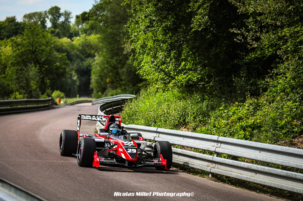 A Dunières, le week-end de Sarah Bernard-Louvet prenait fin dès les essais. La jeune femme était en effet victime d’un accident survenu en dehors de la piste. Au moment de s’extraire de sa Tatuus, la monoplace avançait et lui bloquait une cheville. Blessée, Sarah ne pourra pas poursuivre sa course : « Je tiens à remercier Mylénia (Machado) et Tom (Diebold) qui m’ont aidé parce que je n’étais plus en mesure de me déplacer toute seule. »