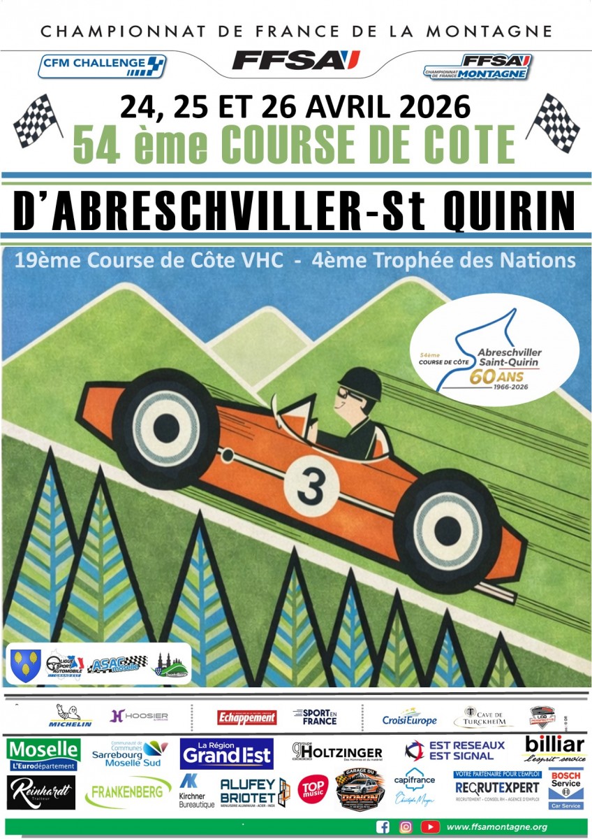En cette fin avril, les acteurs du Championnat de France de la Montagne rejoignent la Moselle pour prendre part à la 54ème édition de la Course de Côte d’Abreschviller – Saint-Quirin. Une épreuve au tracé court, rapide mais technique qui en fait un rendez-vous redouté par de nombreux animateurs du CFM. Le plateau de cette édition 2026 permettra de retrouver la majorité des ténors de la discipline et une variété de voitures qui devraient une nouvelle fois nous offrir un spectacle de qualité et des passes d’armes au dénouement incertain.