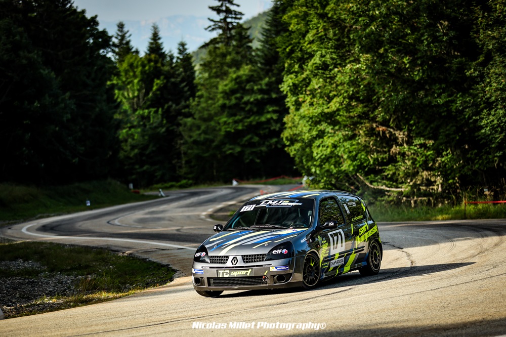 En 2023, Baptiste Thomasset débutait sa saison sur des épreuves régionales avant de se tourner vers le Championnat de France de la Montagne : « En fin d’année je me suis engagé à Chamrousse et à Turckheim avec le TracKing de l’équipe LMJ Technology (la structure de Maxime Dojat, Ndr), et à Limonest avec ma Clio. » A Chamrousse, Baptiste plaçait le TracKing à la septième place de la classe CM qui comptait une douzaine de partants : « Ce qui est un résultat très satisfaisant pour une première avec cette voiture. » Turckheim ne sera malheureusement pas synonyme de la même réussite, puisqu’un souci mécanique le contraignait à l’abandon. A Limonest, il montait sur le podium de la classe A/3 en terminant derrière des pointures comme Mickaël Bonnevie et Romain Billot. « Je voulais juste voir si j’étais dans le coup face à eux, et finalement nous nous sommes battus à coup de dixièmes. Je me suis dit alors qu’il serait bien de m’aligner sur le championnat. »
